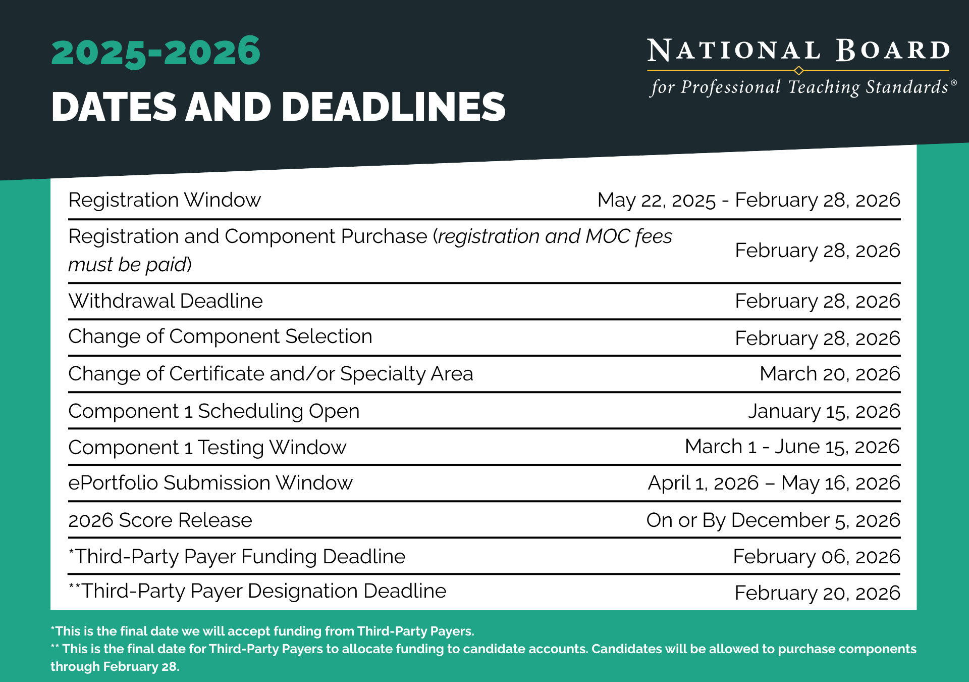 As you prepare to start your National Board Certification process here are important documents for you to download: the General Portfolio Instructions and your selected certificate-specific instructions. The General Portfolio Instructions will provide you with key requirements, policies, and guidelines. This is an important document that includes relevant information that is not included in the certificate-specific instructions. For certificate-specific instructions and standards for new and returning candidates, please carefully select your discipline and/or development age level below.