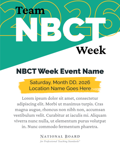 Share your graphic on social media, add your caption, and tag @NBPTS on LinkedIn, Instagram, and Facebook so we can celebrate with you and help amplify the Team NBCT Week celebration.